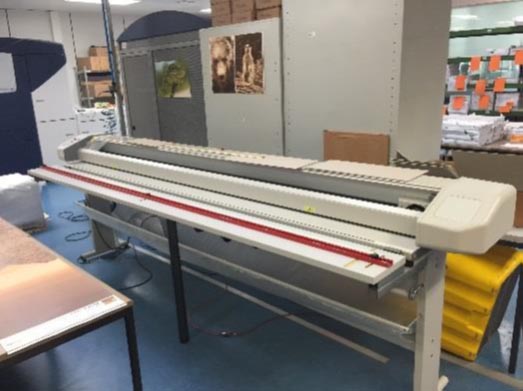 Zusätze: upgraded auf 5000Plus, großer Rollenanleger, Assy web finishing Modul, Web trimmer zum Säumen von langen Produkten