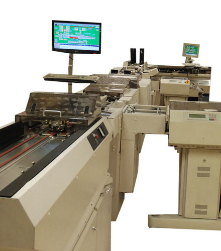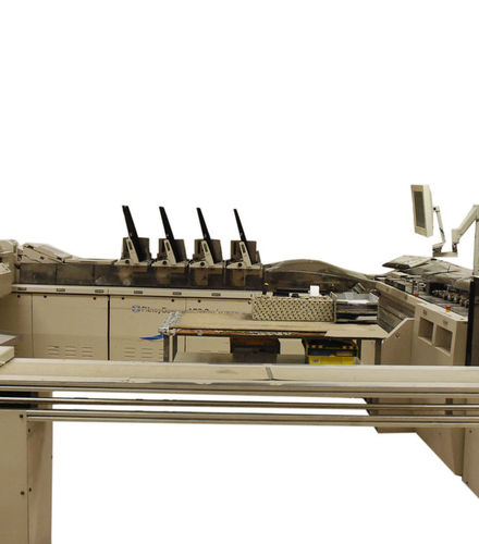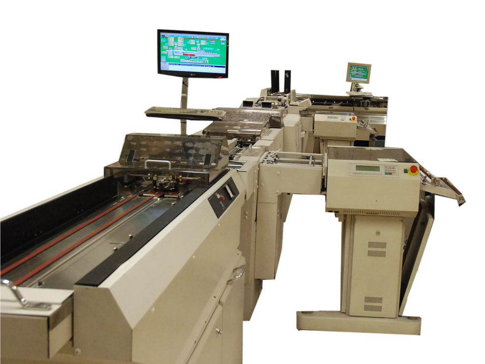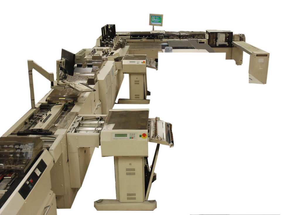 Komponenten: Einzelblattanleger, 2 Schneider, 4 Beilagenstationen, Aussteuerfächer, Ablage