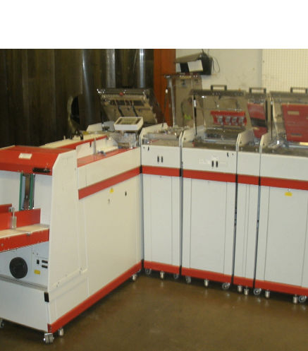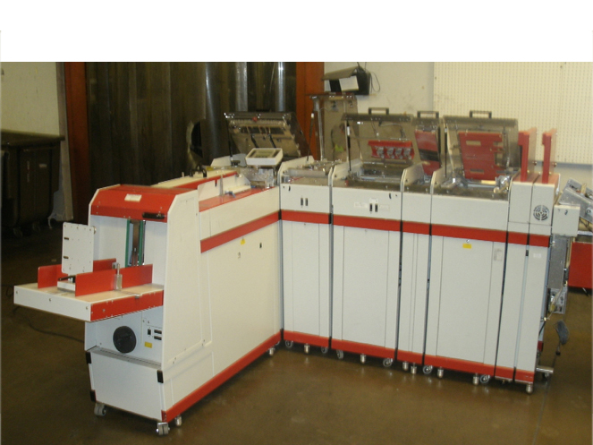 Komponenten: Müller Einzelblattkanal (2012), Buhrs 6-Stationen-Basis, 4 Rotationsanleger, Aussteuerfach, Ablageband