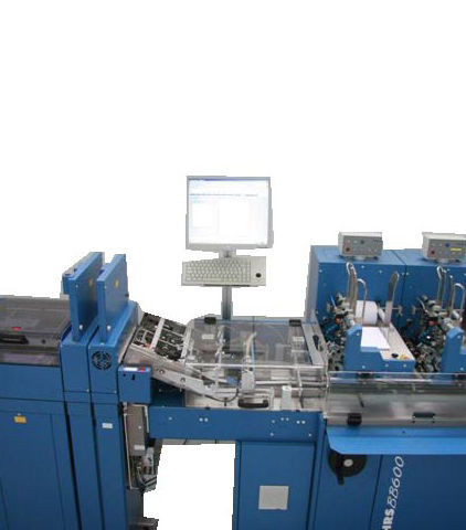 Komponenten: 6er Sammelstrecke, Müller Einzelblattkanal mit Kameralesung, 2 Rotationsanleger RF 2, Kuvertautoloader,- Aussteuerfach, Ablageband