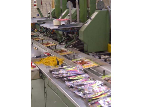 Komponenten: Vakuumöffner, 4 Stationenbasis, 2 Rotationsanleger links, 1 Friktionsanleger, Verpackungseinheit, Ablageband