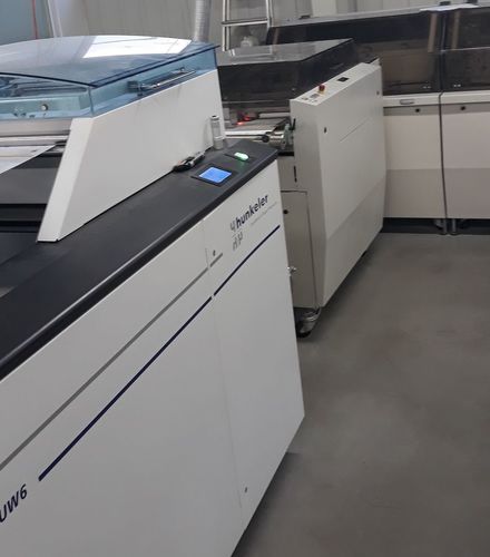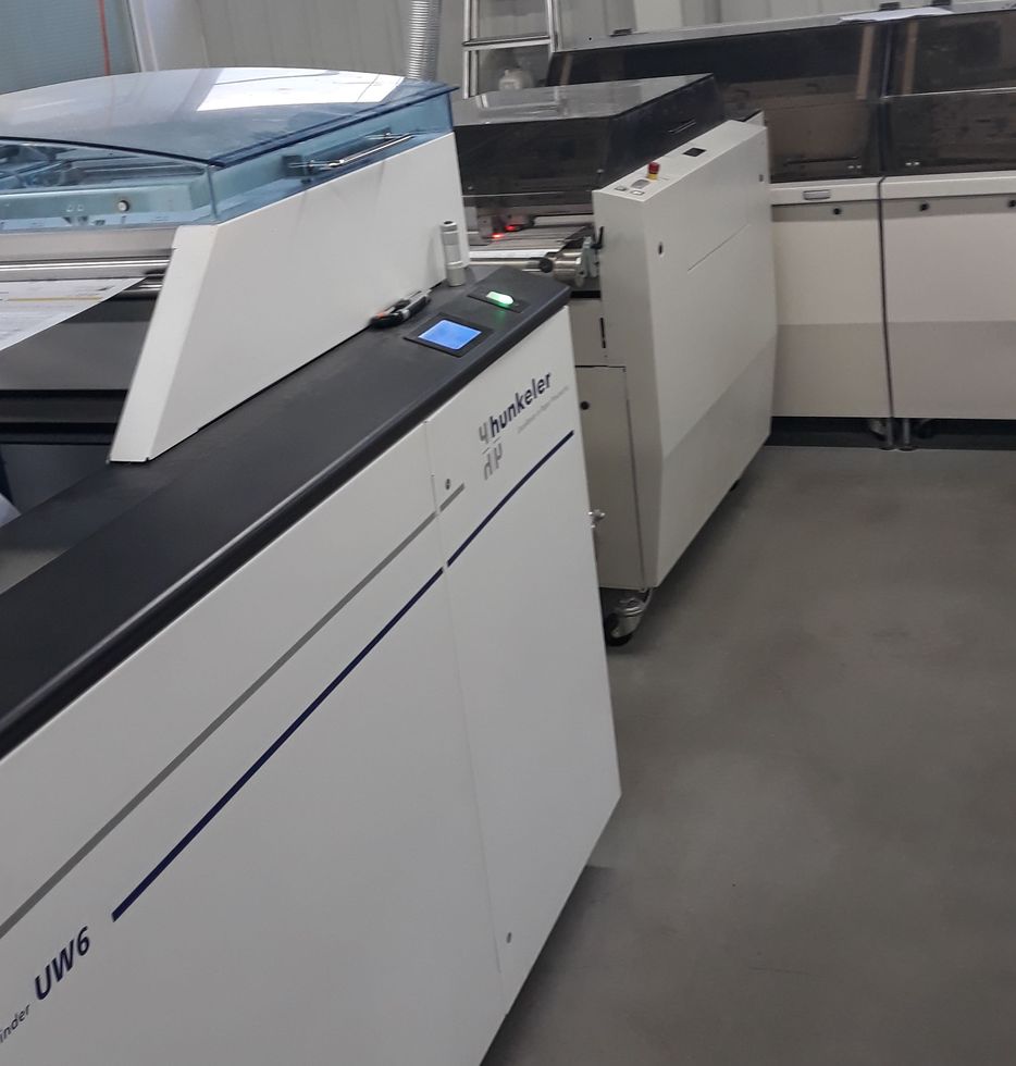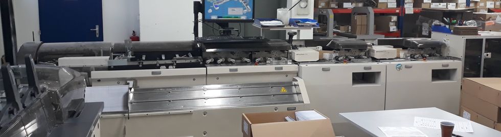 Komponenten: Abwickler Hunkeler UW6, HPI Westport TM, Pinless Schneider, HPI Dual Sammelstation, 4 Taschenfalzwerk, 3 Friktionsanleger, 2 Frankierer-Kits, 2 Aussteuerfächer, Vertikalablage