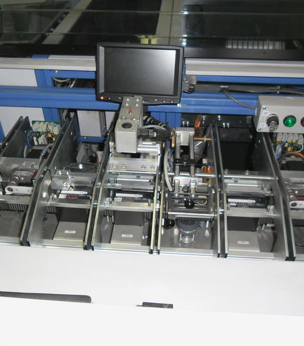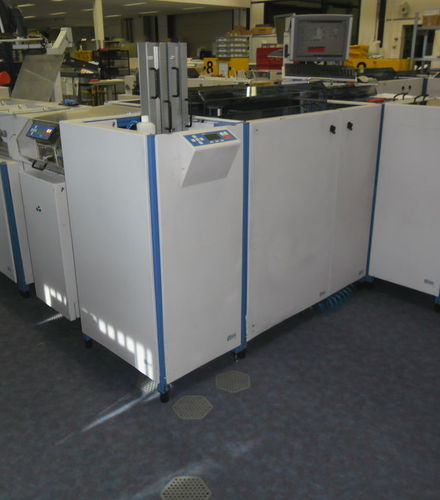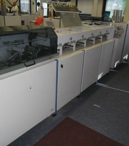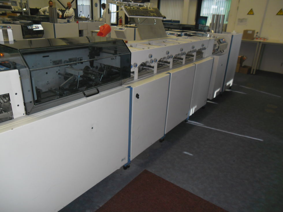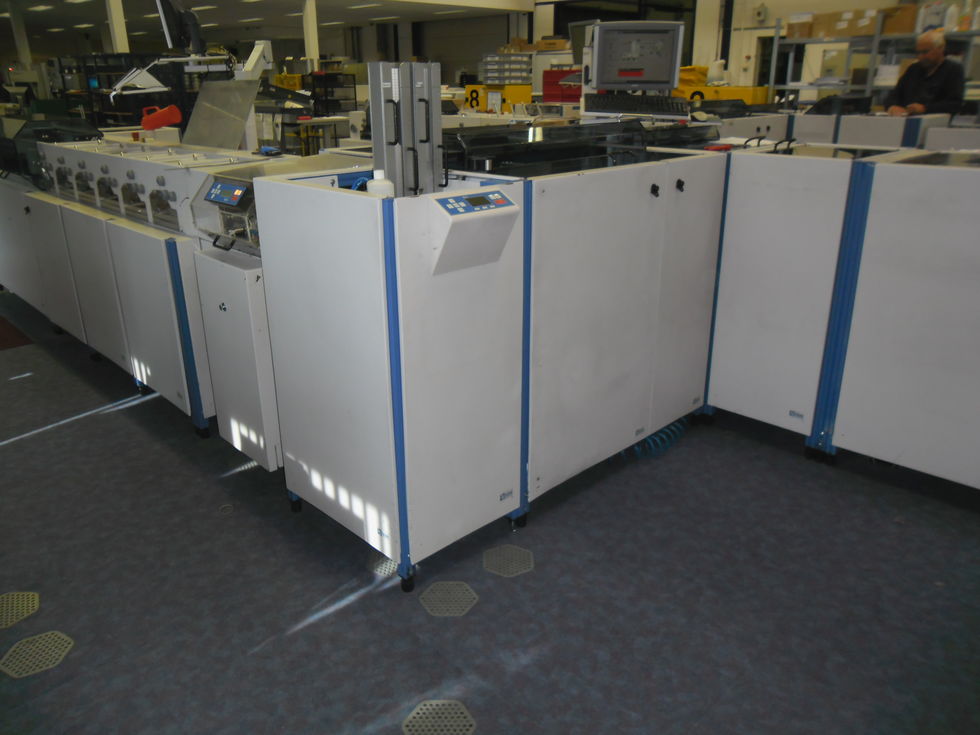 Kartenkontrollstation, Aussteuerfach, Sammelstation, 4 oder 6 Beilagenstationen, Kuvertiereinheit, Ablageband
