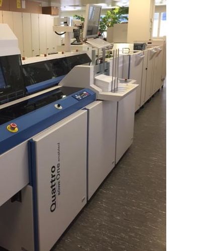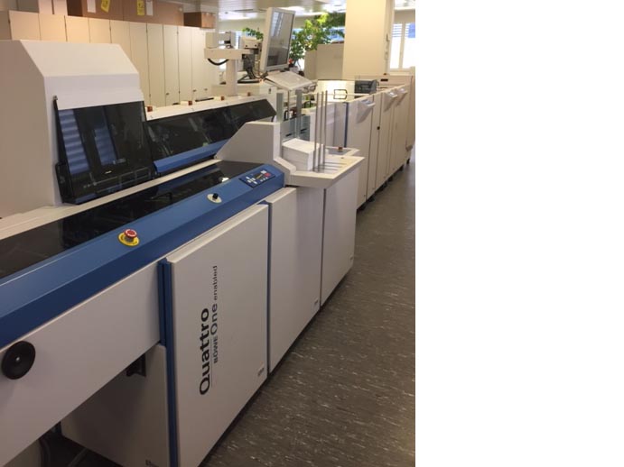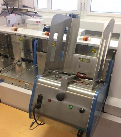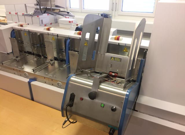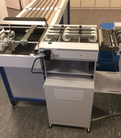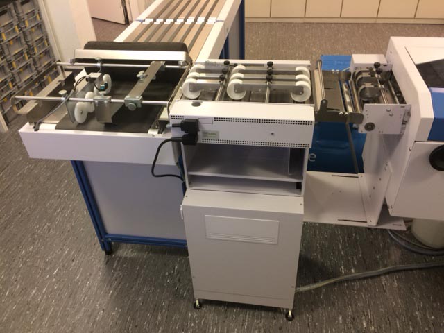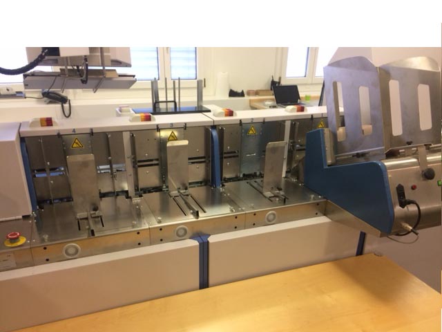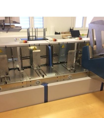 Komponenten: Einzelblattanleger 590 Speed, Sammelstation, Falzstation, Wendeinheit, 4 Beilagenstationen davon 1 Friktionsanleger, 1 Aussteuerfach, Schuppenablage